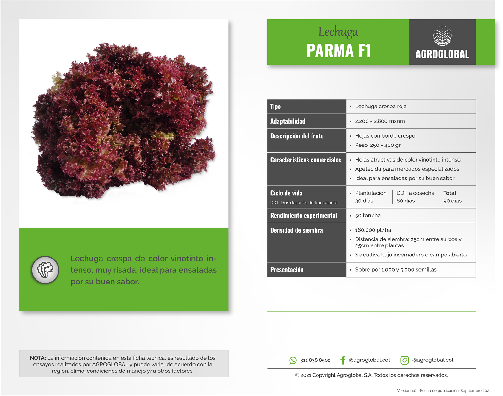 Parma F1, lechuga crespa roja en presentación de 1.000 y 5.000 semillas.